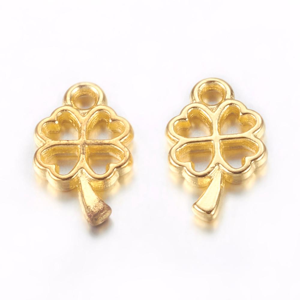 10st guldfärgade fyrklöver hängen berlocker - 10mm