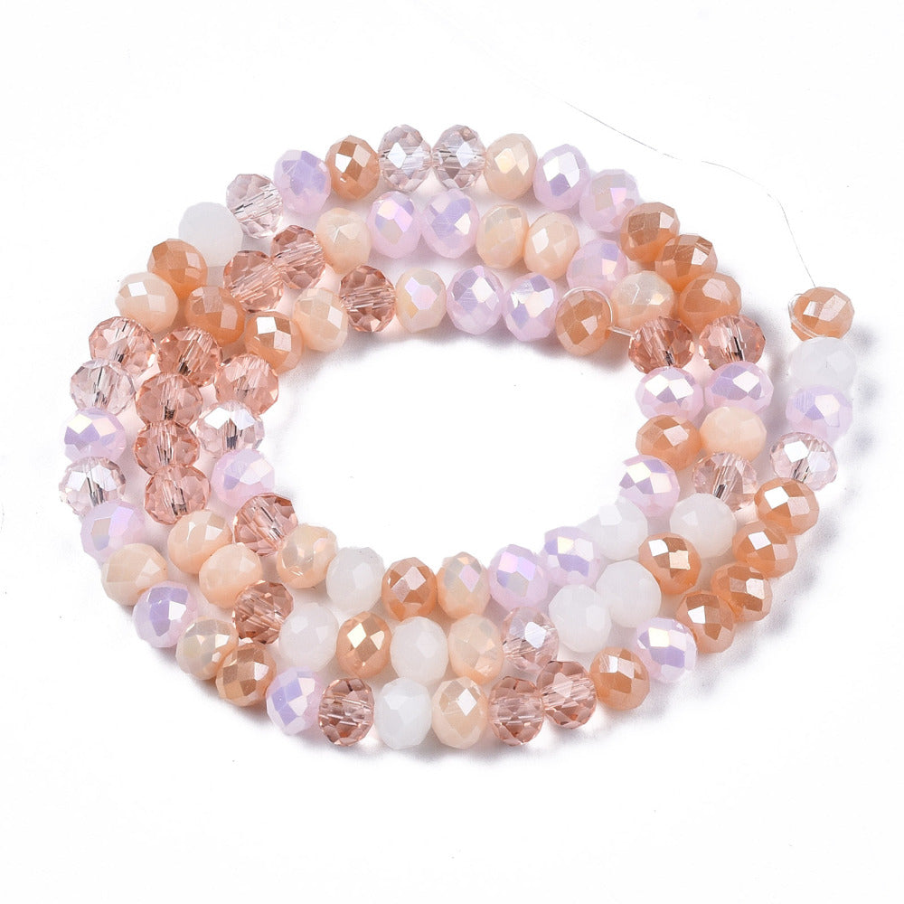 Elektropläterade facetterade glaspärlor. Rosa-brun mix.