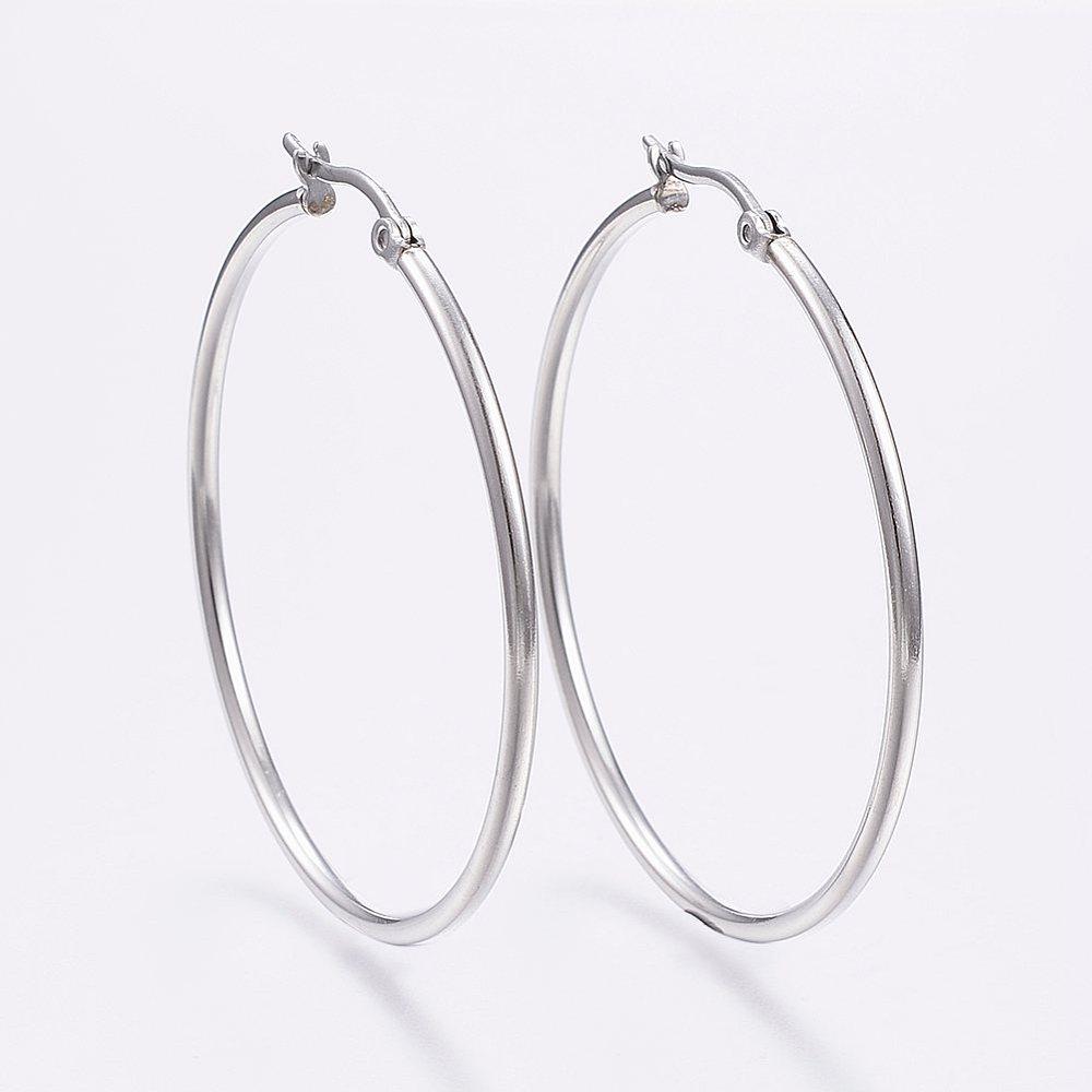 1par creoler hoops örhängen i Rostfritt stål - 50mm