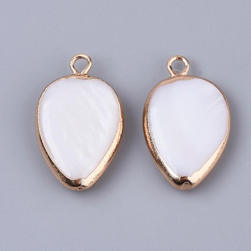 Vackert droppformat hänge i snäckskal med guldfärgad kant.