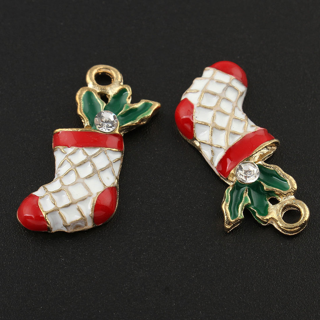 1st söt julstrumpa med strass - emaljerat hänge berlock