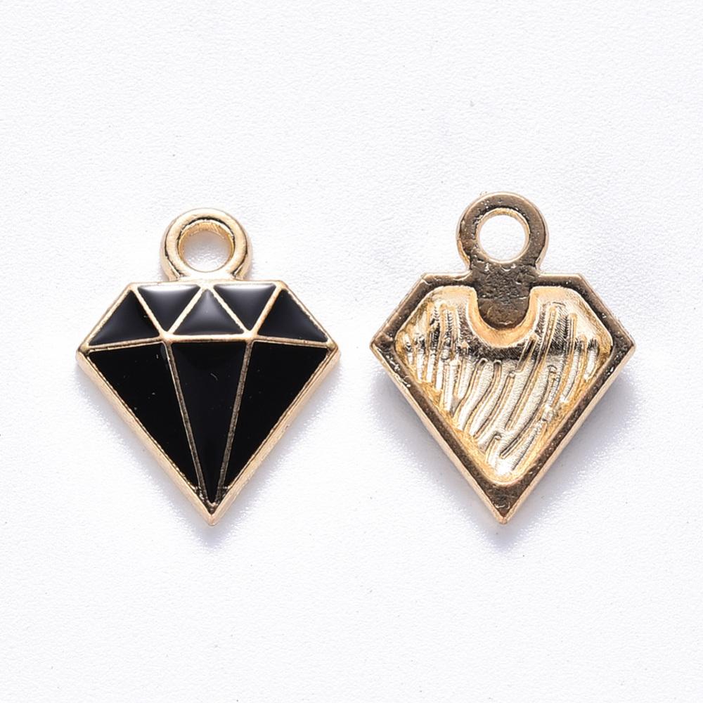 Svart/guldfärgat diamantformat hänge. Emaljerad berlock.