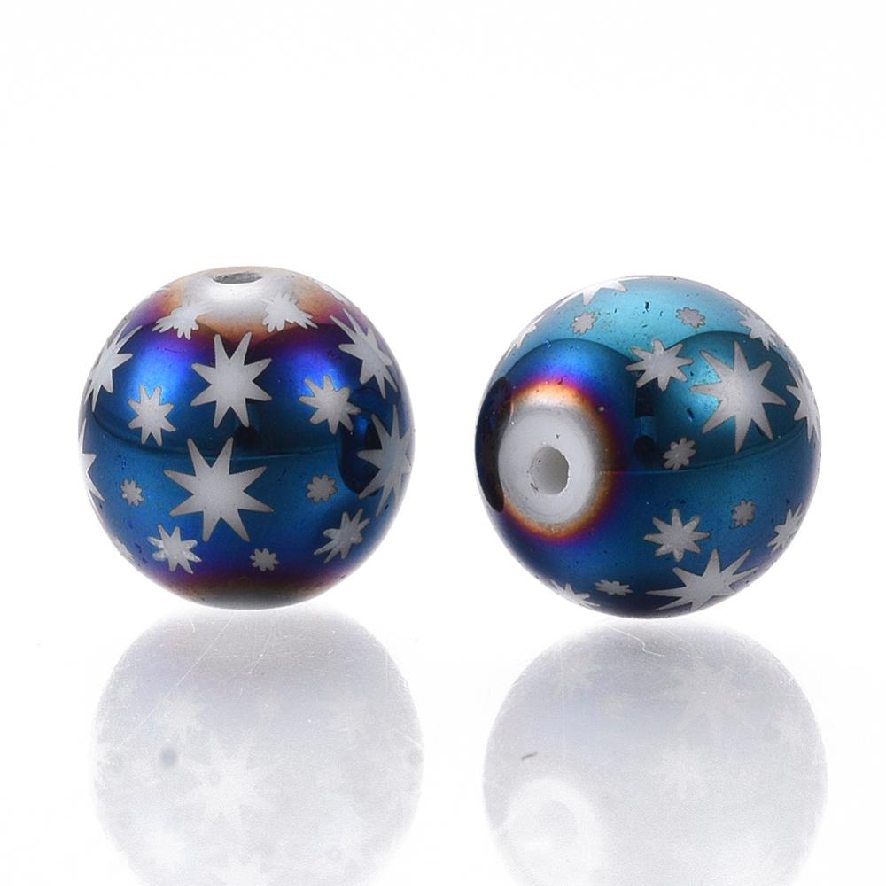 20st Glaspärlor blåa med stjärnor - 10mm - JUL