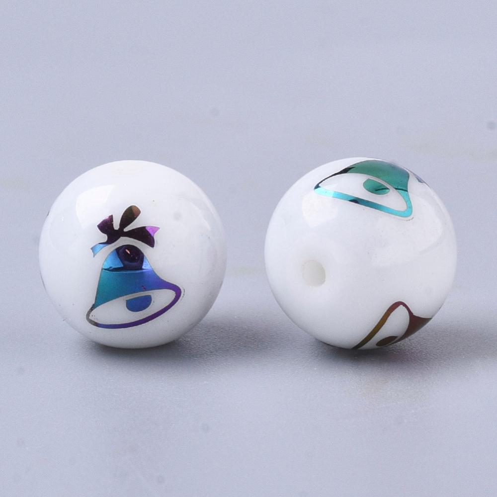 20st Vita glaspärlor med julklocka - 10mm - JUL