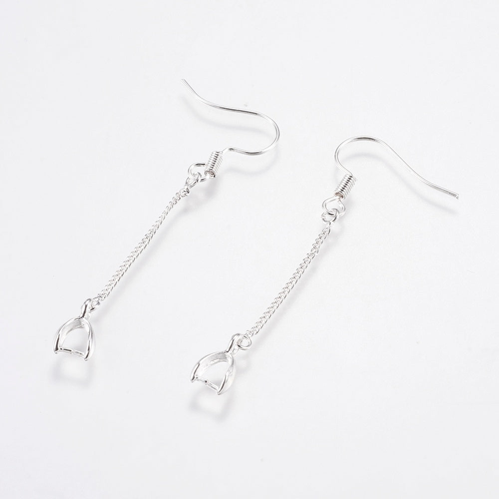 Silverfärgade örhängeskrokar med kedja och fäste pinch bail.