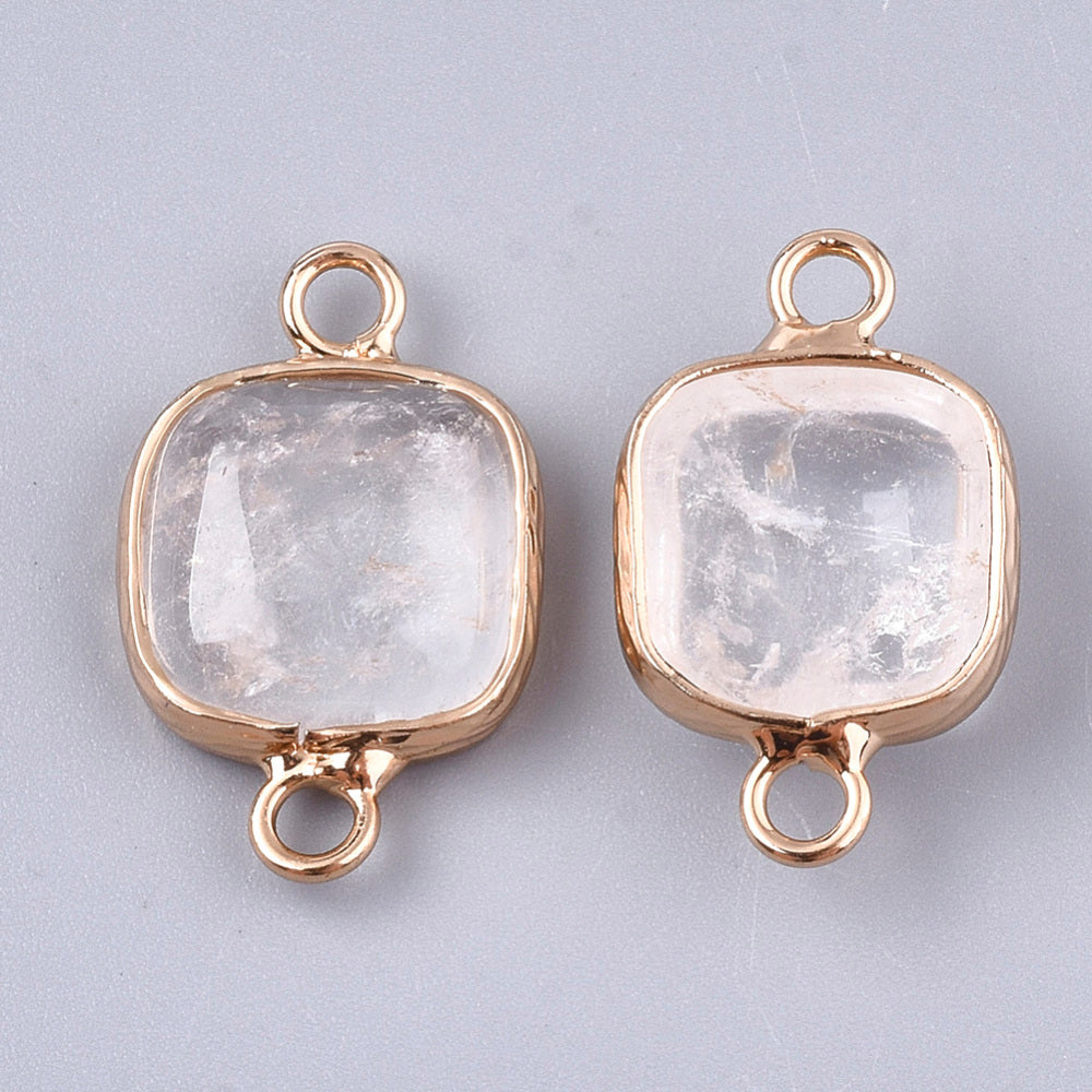Naturlig Bergkristall connector / länk fyrkant i guldfärgad metallfattning.