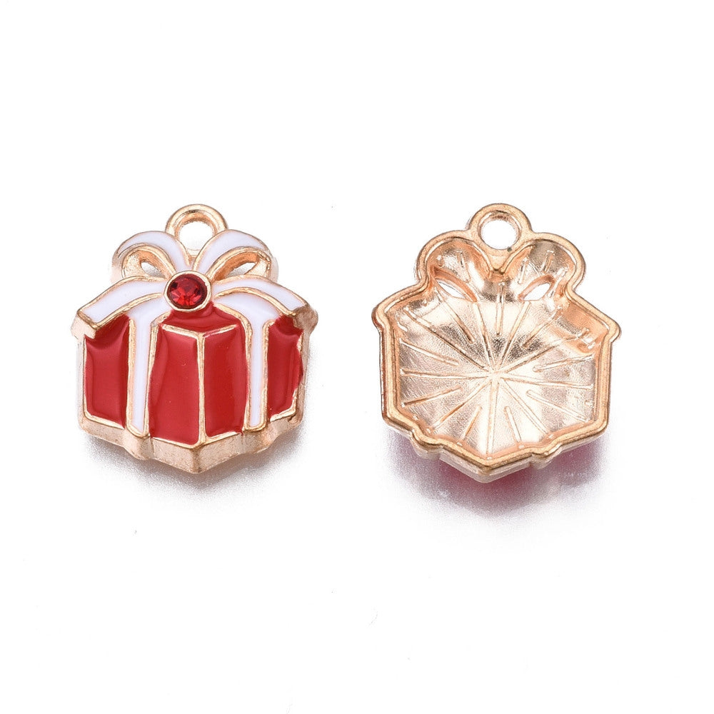 Julklapp paket med strass - emaljerat hänge berlock