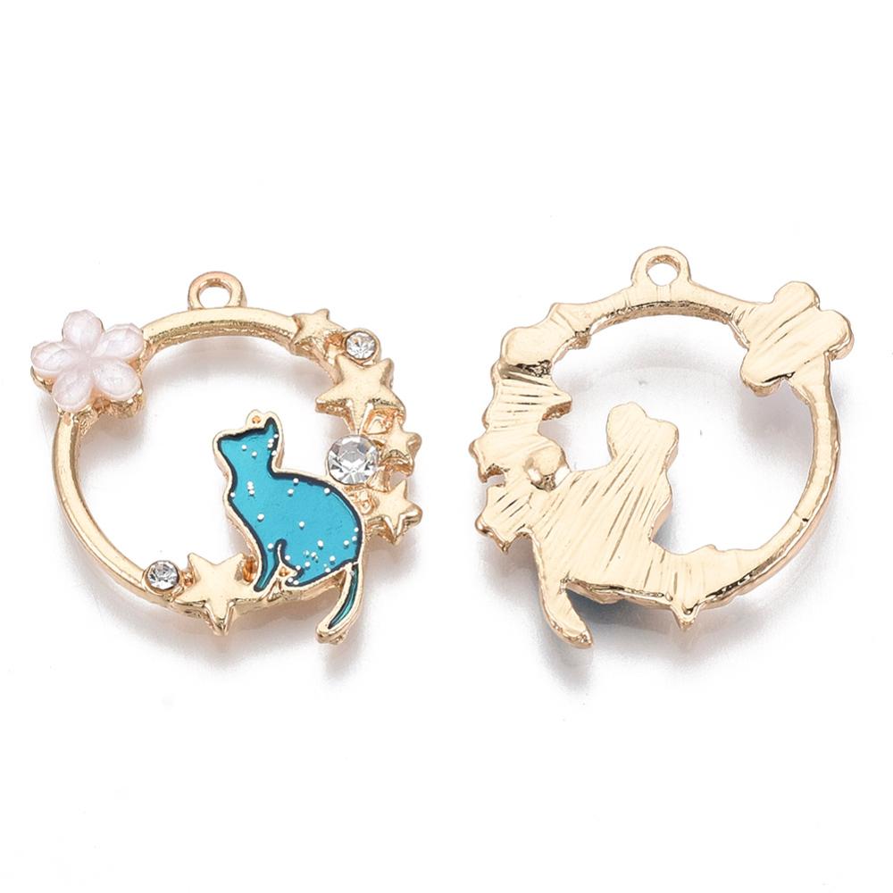 Katt med blomma - Emaljerat hänge med strass - 1st