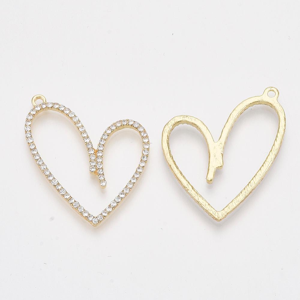 Vackert hjärta i ljust guldfärgad metall med strass.