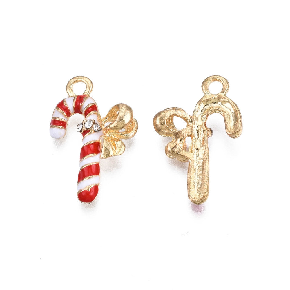 Polkagris käpp med strass - emaljerat hänge berlock