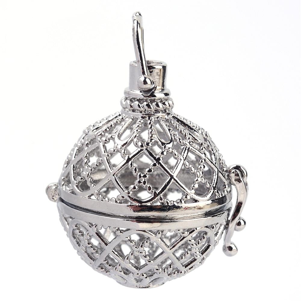 Vacker pärlbur med sirligt mönster, hänge i metall.